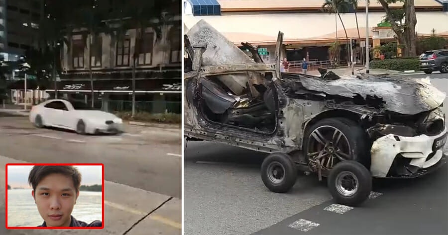 Police were alerted to the accident at 541am. Driver was allegedly giving friends joyride in recently-bought BMW coupe. At 540am on Feb 13 the second day of Chinese New Year a BMW M4 Coupe driven by Jonathan Long 29 slammed into a vacant shophouse on Tanjong Pagar Road and burst into flames.